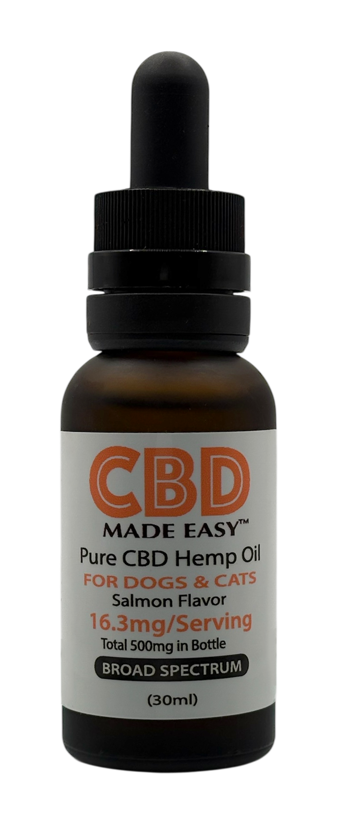We are sure you pay close attention to exactly what you put in your pet's body. Our CBD Made Easy for Dogs and Cats is over 16mg per one ml serving CBD Broad Spectrum Hemp Oil. The 30ml bottle contains a total of 500mg of CBD THC Free Broad Spectrum Distillate.
